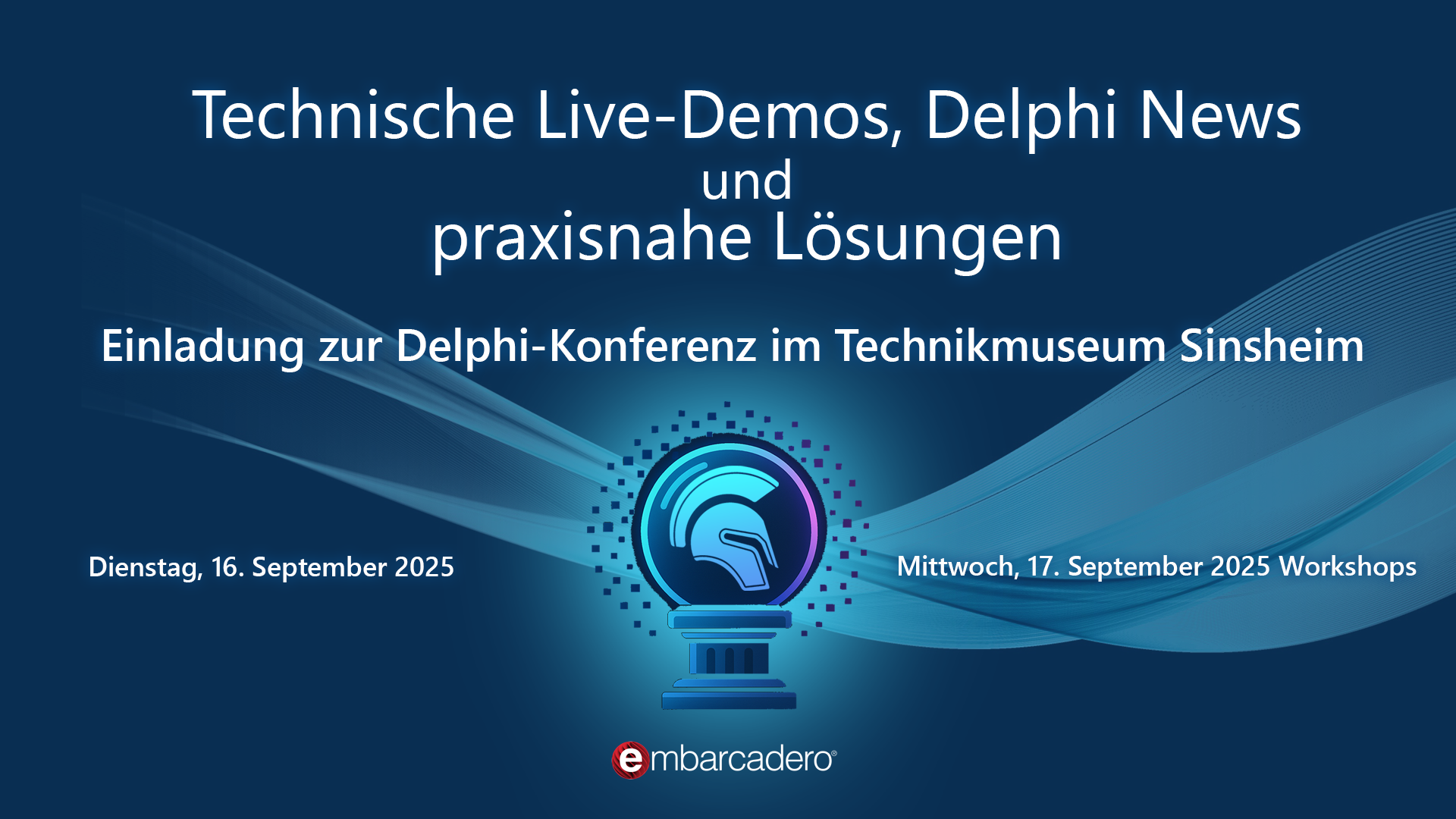 Verlassen Sie mal wieder den Bildschirm und lassen Sie uns persönlich im Rahmen von 30 Jahren Delphi treffen. Ein Tag, der ganz im Zeichen von Innovation, Austausch und echter Entwickler-Leidenschaft steht. Delphi-Begeisterte, Entwicklerinnen und Entwickler sowie Technologie-Partner, treffen sich, um gemeinsam in die Zukunft zu blicken – mit spannenden Einblicken in die neue Delphi 13 Version und exklusiven Sessions, unter anderem mit Ian Barker, dem bekannten Delphi-Advokaten und Devid Espenschied, Pre-Sales Consultant Embarcadero Germany. Anschließend möchten wir mit Ihnen am Abend bei gutem Essen und kühlen Getränken gemeinsam feiern.